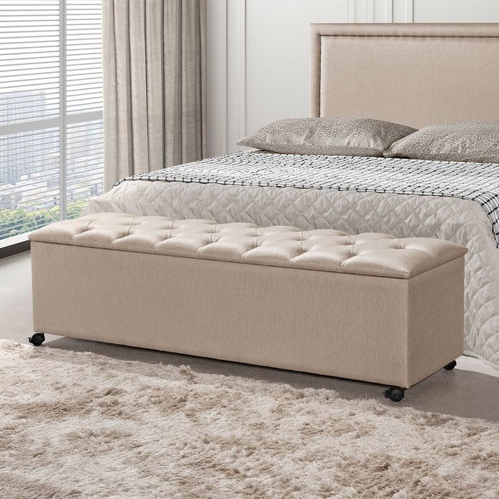 Recamier Baú com Rodízios Cancun 1,50m Linho Bege