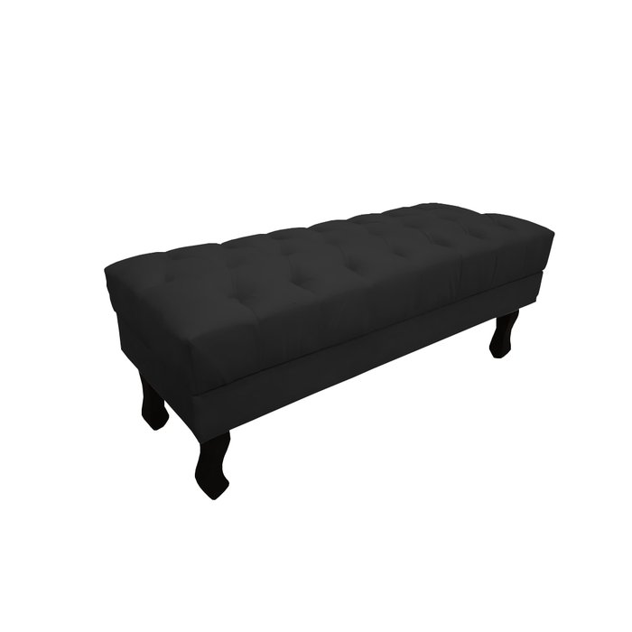 Recamier Baú Luis Xv Capitonê Retrô 100 cm Couro Preto Mz Decor Preto