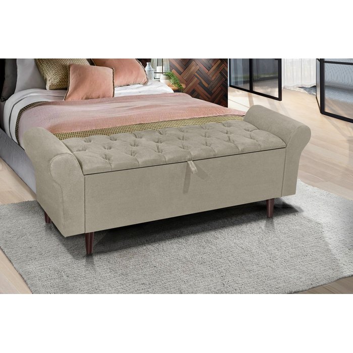 Recamier Báu Para Cama Casal 150 Cm Pés Palito Retro Bege Bege