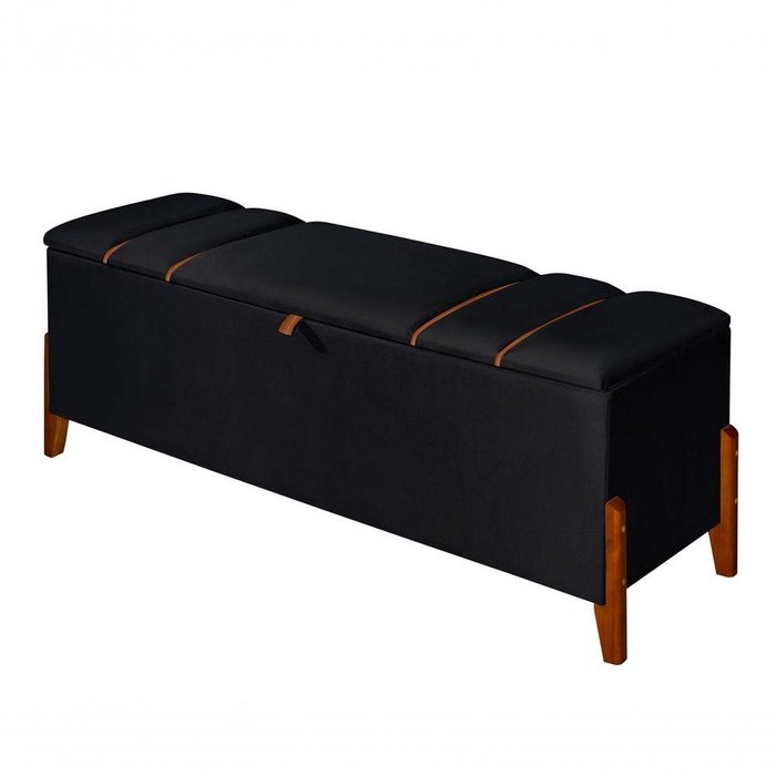 Recamier Baú Retro Pés Madeira Casal Roma 150cm Sapateira Cor Preto Preto