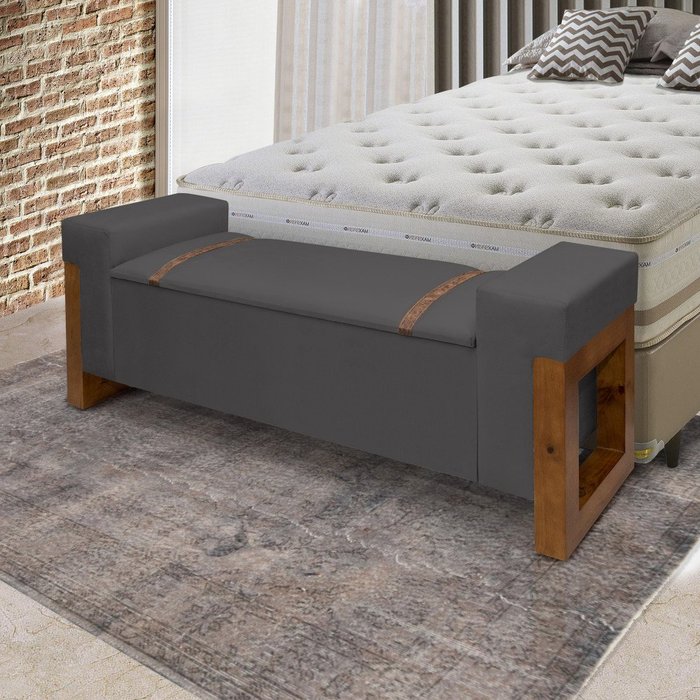 Recamier Baú Sapateira Casal com Pés de Madeira Retro 130 Cm Moveis House Cinza Cinza