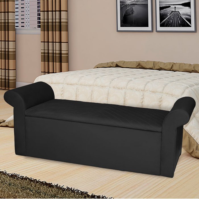 Recamier Baú Viena Casal 140 Cm Suede Preto - MV Estofados Shop Preto