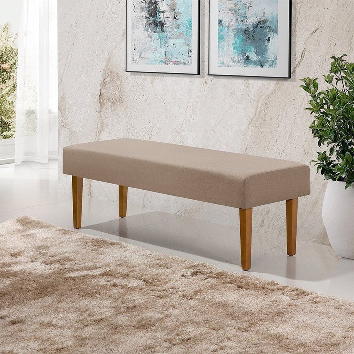 Recamier Casal Pés em Madeira Maciça 1,38m Lisboa Linho Bege Bege
