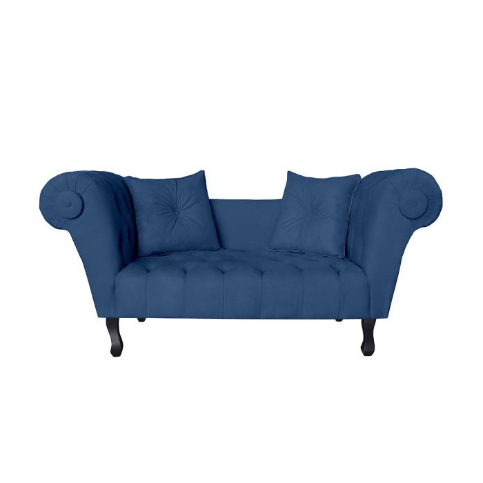 Recamier Divã Namoradeira Dubai Capitonê Suede Azul Marinho