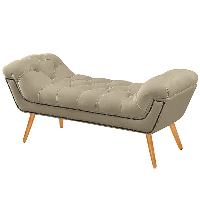 Recamier Estofada Casal King Size Ayla Veludo Bege Claro Bege