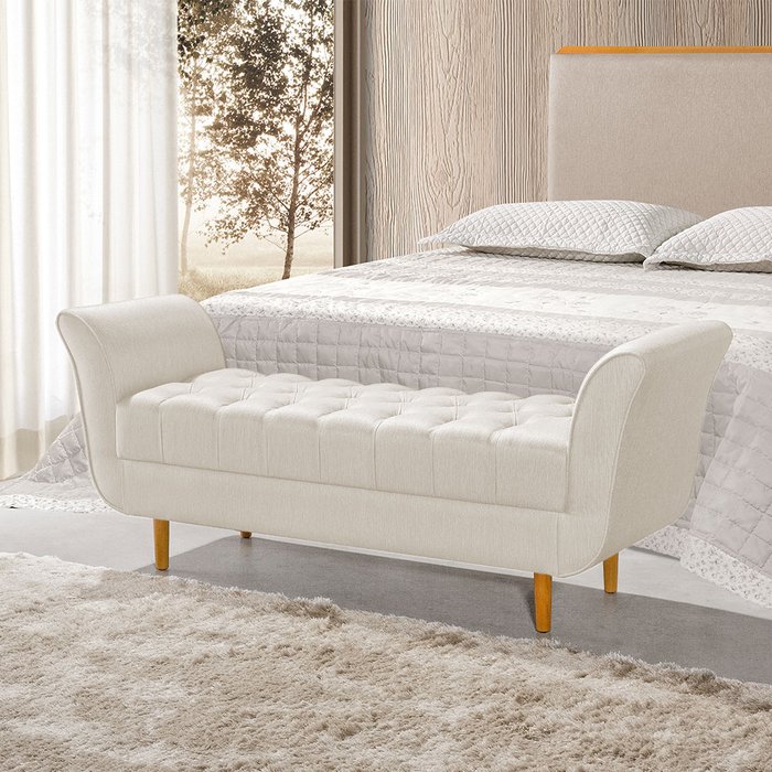 Recamier Pés Palito em Madeira Marajó 1,50m Capitonê Linho Crú BEGE