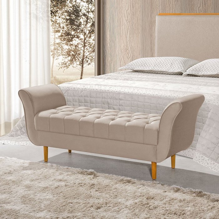 Recamier Pés Palito em Madeira Marajó 1,83m Capitonê Veludo Bege BEGE