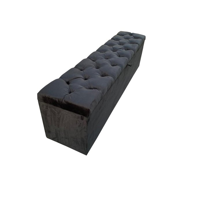 Recamier Puff Baú - Capitonê - Beira de Cama - 1,40 Cm - Preto Preto