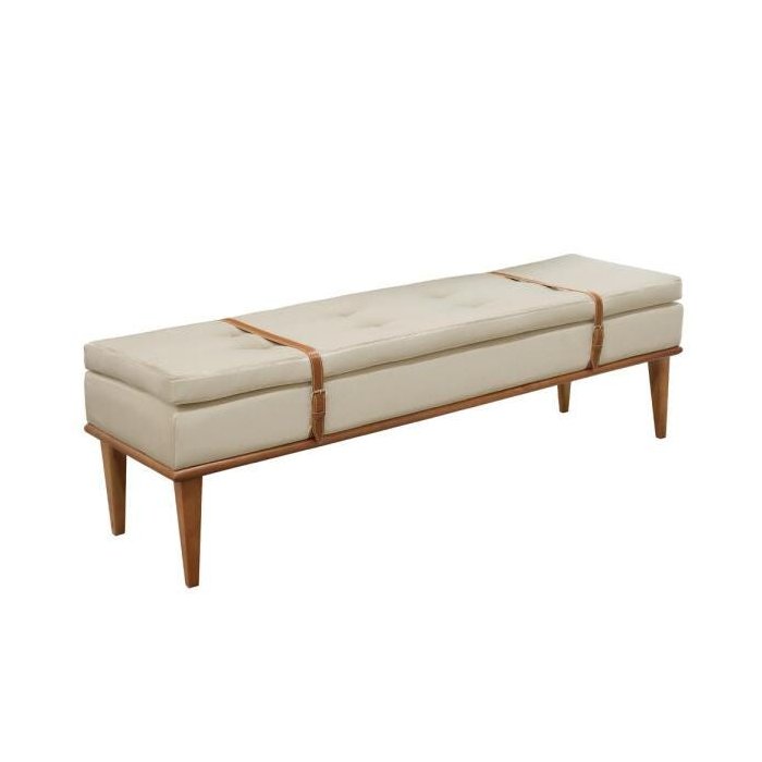 Recamier Puff Londres Luxo Madeira Maciça Veludo Bege Claro Bege Claro