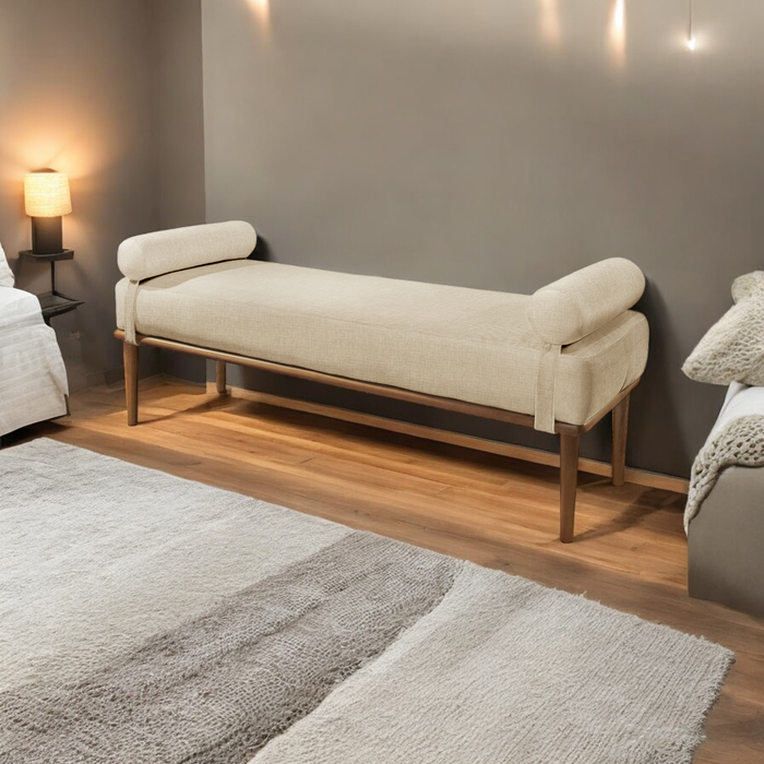 Recamier Puff Luxo Madeira Maciça Berlim Linho Bege Claro