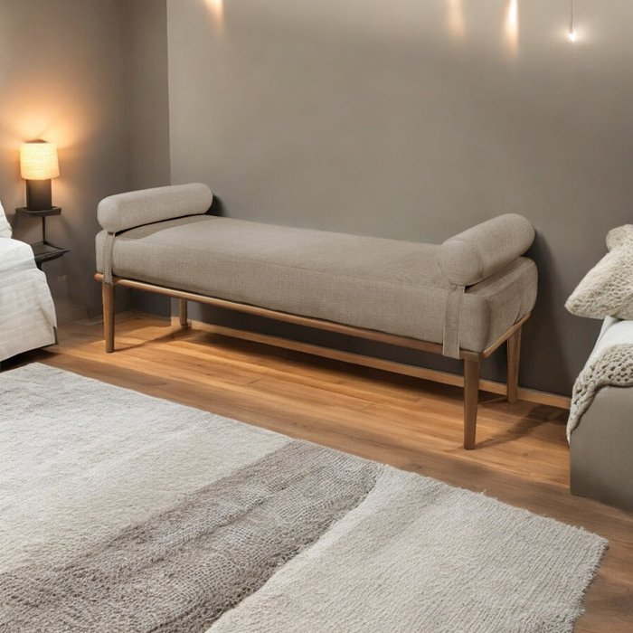 Recamier Puff Luxo Madeira Maciça Berlim Linho/Cappuccino