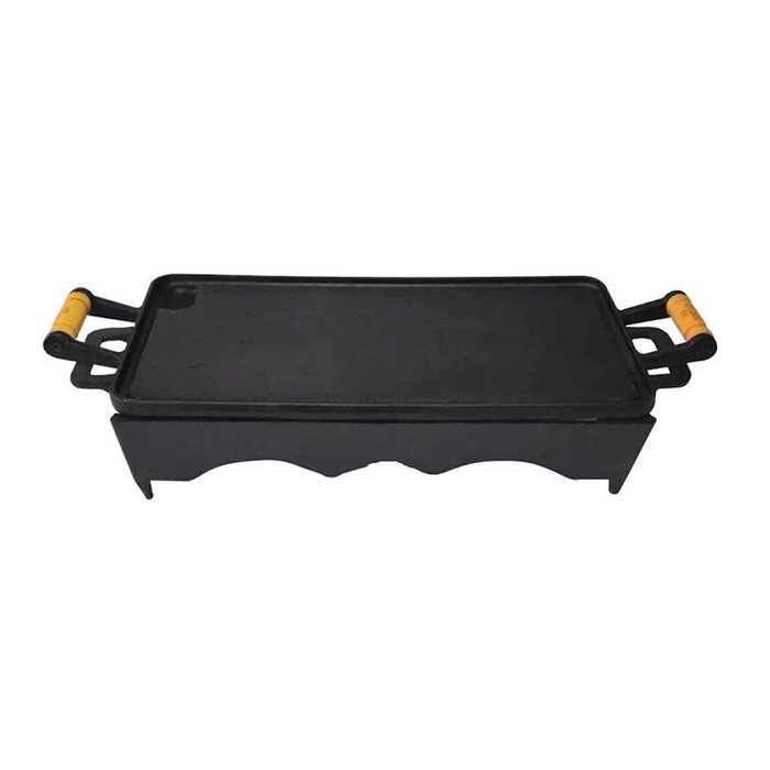 O Réchaud possui um design moderno, com a base lisa e canaletas nas bordas que permitem o escoamento da gordura da peça que está sendo cozida. Ideal para preparar fritar, selar e grelhar carnes, legumes, peixes e outros alimentos, de maneira prática e eficiente. Sua excelente distribuição e retenção de calor, característico do ferro fundido, mantém os alimentos aquecidos por muito mais tempo, além de enaltecer seus sabores e aromas.
