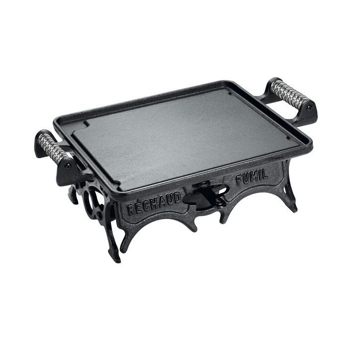 Chapa lisa com 30 cm comprimento x 25 cm largura, essa medida corresponde somente a área útil da chapa, ou seja, não inclui as alças. Chapa lisa com canaleta nas bordas que armazenam os líquidos para deixar o centro mais aquecido. Ideal para preparar carnes, legumes, vegetais, peixes A chapa também pode ser utilizada em todos os tipos de fogão. Alças de Espirasl Fogareiro todo em ferro fundido, a álcool com regulador de chama e base desmontável, com abas laterais para proteger do vento. Fogareiro atinge temperatura suficiente para esquentar a chapa e preparar a carne mesmo crua. Todo em ferro fundido esse réchaud tem durabilidade imensurável, e conserva por mais tempo o calor. Muito utilizado por bares, restaurantes e hotéis para servir porções e mantê-las aquecidas.