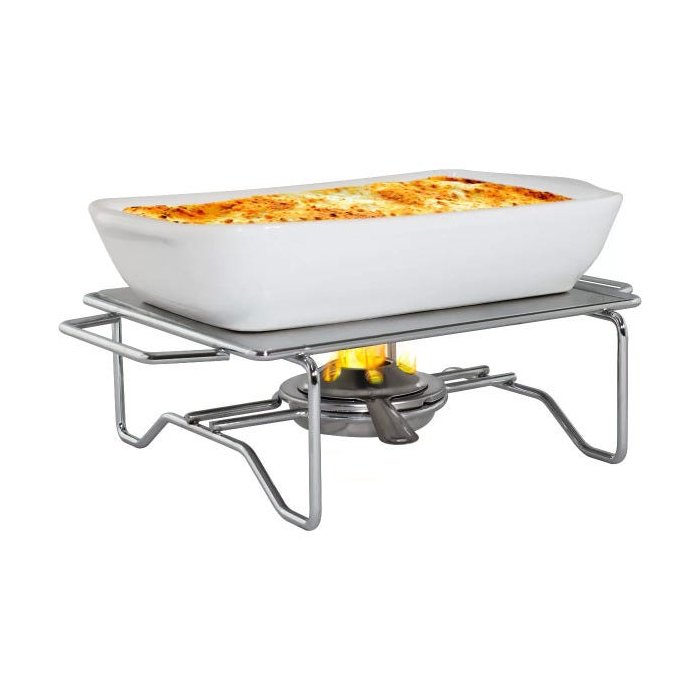 Rechaud Retangular Travessa em Cerâmica com Acendedor Inox