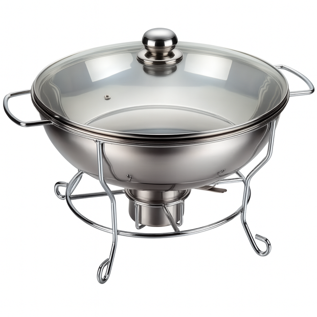 Rechaud Rm Redondo em Aço Inox Banho Maria com Suporte para Tampa e Fogareiro 6 L Buffet cinza