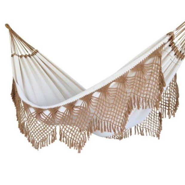 REDE DE DORMIR BUCHO DE BOI CASAL LUXO REFORÇADA DESCRIÇÃO DO PRODUTO:A Rede bucho de boi é conhecida por sua elegância, beleza e resistência. Indicada para ser usada em varandas, dormitórios e salas. Com um ótimo custo benefício. As varandas são confeccionadas artesanalmente feita à mão, assim como seus trancelins e demais acabamentos, constitui uma belíssima peça de decoração para seu ambiente.INFORMAÇÕES ADICIONAIS: Modelo: Rede Bucho de Boi Casal Luxo Peso unitário aproximado: 3,400 kg Capacidade Máxima de Carga: 300 Kg Dimensões: 2.50 m x 1,60 m (Só tecido) Distância Ideal dos Ganchos: Aprox. 3,60 a 3,80 m Comprimento Total: 4.20mComposição: Tecido 100% AlgodãoAltura Ideal dos Ganchos: Aprox. 1.90Não solta tintaTecido macio e super confortávelITENS INCLUSOS:01 Unidade de Rede Bucho de Boi Casal Luxo Reforçada