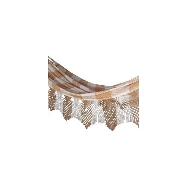 Rede de Descanso Dormir Casal Bege com Caramelo Luxo Algodão Gigante Suportar 300kg Varandas Artesan crua