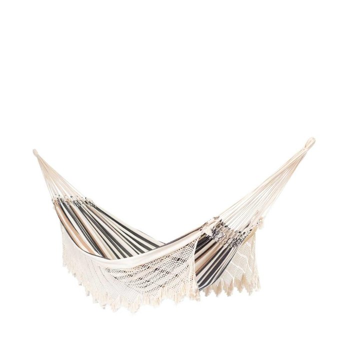 A Jeri é uma rede de textura lisa com faixas de cores sóbrias, que mesclam perfeitamente com o cru tradicional do tecido. Oferece um ótimo conforto ao usuário, ideal para ambientes como varanda e sacadas. Além disso, a Rede Jeri possui um acabamento especial feito em macramê, processo 100% artesanal, com punhos e mamucabas feitos à mão, o que garante uma maior durabilidade e estabilidade à rede.