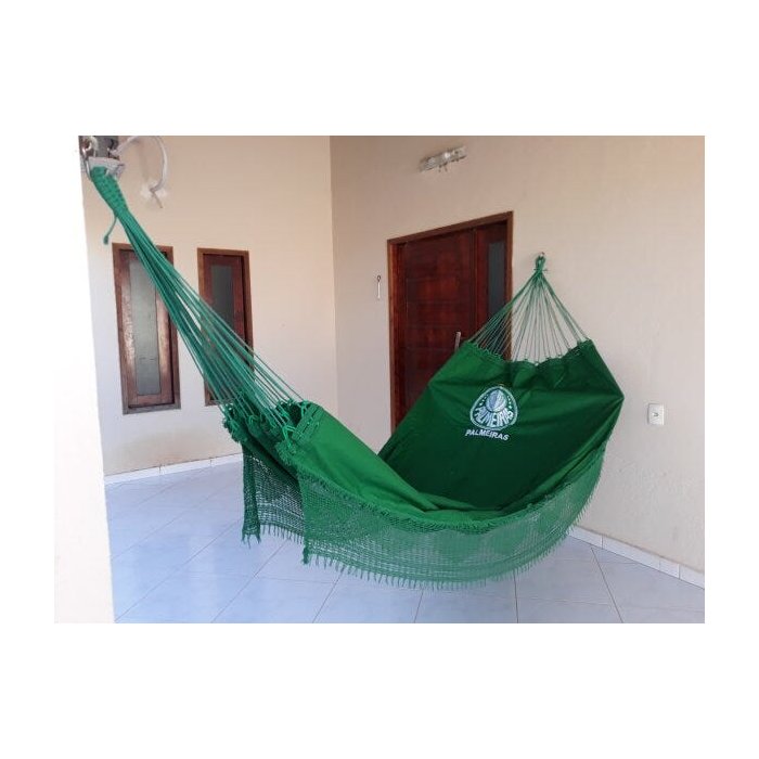 Rede de Dormir Bordada com escudo do seu time foi desenvolvida para quem é apaixonado por futebol e fã de uma bela rede de dormir. Neste modelo exclusivo foi feita com tecidos em brim, antialérgicos, não soltam pêlos e nem tinta.Seu tamanho casal oferece o máximo de conforto e segurança, suporta até 180 kilos, para você assistir os jogos do seu time preferido deitado em sua bela rede de dormir. Dados do ProdutoDimensões: 2,55 m x 1,60 m ( Só tecido )Comprimento Total: 4,15 mCapacidade Máxima de Carga: 180 kg