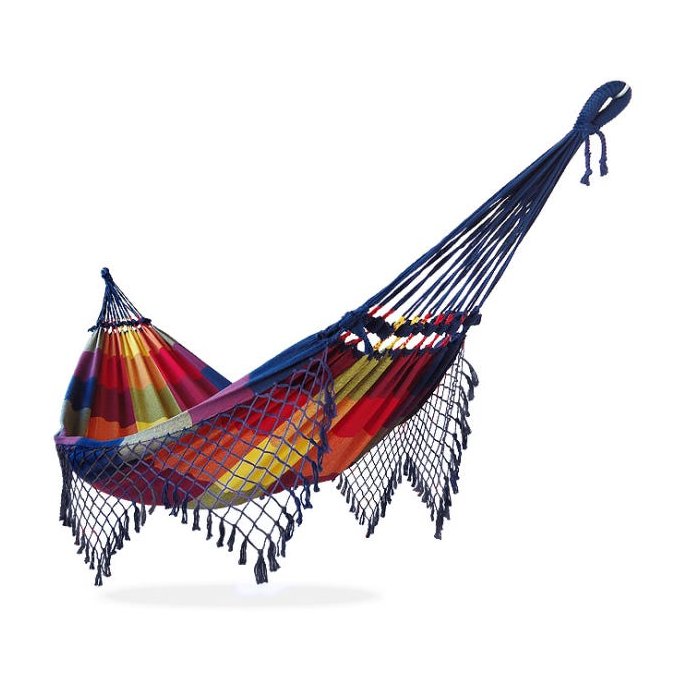 Com cores vivas e contrastantes, a rede de descanso simples xadrez amarelo, vermelho e azul marinho é indicada para ambientes mais alegres, descontraídos. Em uma sala com paredes pintadas com uma cor clara, como o branco, por exemplo, fica um show.É confeccionada artesanalmente por artesãos pernambucanos através de processo totalmente manual que leva em torno de 3 a 4 semanas para que finalmente fique pronta. Com um pano bem macio, uma vez que é utilizado fio de algodão de excelente qualidade, proporciona uma ótima experiência ao seu usuário.É uma rede de dormir de casal, suportando até 180 kg, ou seja, o peso de duas pessoas com 90 kg cada.Por ser uma rede totalmente artesanal, não possui nenhum tipo de costura em seu tecido, garantindo-lhe ainda mais resistência.