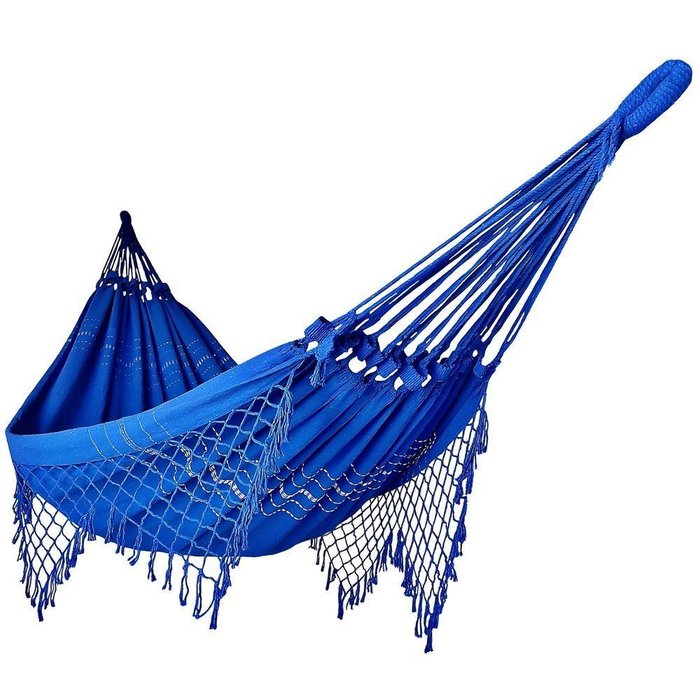 Rede De Dormir Descanso Casal 3,80m X 1,50m Algodão Premium Azul Royal Transforme Seus Momentos de Descanso com Nossa Rede de Dormir para Casal Experimente o verdadeiro conforto e estilo com essa rede de dormir para casal. Feita à mão com 100% algodão premium, esta peça única combina suavidade incomparável e um design elegante, garantindo a experiência de relaxamento que você merece. Características:Material Premium: Feita com 100% algodão de alta qualidade, garantindo maciez, resistência e respirabilidade superior. O algodão é conhecido por sua capacidade de absorção de umidade, mantendo você seco e confortável.Dimensões Generosas: Comprimento total de 3,80 metros e tecido de 2,35 x 1,50 metros, oferecendo um espaço amplo e confortável para relaxar e dormir.Capacidade de Peso: Suporta até 200 kg, ideal para dois adultos relaxarem juntos.Instalação Recomendada: Instale os ganchos a uma altura de 1,40 a 1,80 metros do piso e mantenha a distância entre eles de 2,40 a 3,50 metros. Essas são orientações para uso ideal, mas você pode ajustar a instalação conforme suas preferências.Design Artesanal: Franjas feitas à mão de 40 cm e cordas grossas de 72 cm proporcionam um charme rústico e segurança robusta.Produto Original: Garanta a qualidade e a autenticidade. Não se deixe enganar por cópias de qualidade inferior.Por Que Escolher Essa Rede?Conforto Superior: Algodão premium e design espaçoso para uma experiência de descanso incomparável.Durabilidade Garantida: Materiais de alta qualidade e técnicas artesanais para uma rede feita para durar.Estilo Elegante: Franjas e cordas grossas que adicionam um toque sofisticado a qualquer ambiente.Versatilidade de Uso: Ideal para varandas, quintais ou interiores, transformando qualquer espaço em um oásis de conforto e elegância.Não perca a chance de transformar seu espaço com essa rede de dormir para casal. Adquira a sua hoje mesmo e descubra o verdadeiro prazer de relaxar em grande estilo. Aproveite a qualidade e o conforto que você merece! Instruções de Cuidado:Manutenção: Lave à mão com detergente suave e deixe secar ao ar livre para preservar a qualidade.Armazenamento: Guarde em um local seco e arejado quando não estiver em uso.