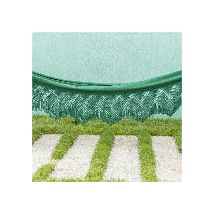 Descrição Geral: A Rede de Dormir Jeans é uma rede em tanga de algodão, com a proposta de praticidade e durabilidade do tecido. Como o nome já coloca é a rede para todos os dias que aguenta mesmo o pancão. Com varanda em tipologia macramê ,punhos e caréus feito à mão. Características: Acabamento:varanda, Mamucaba e caseados Composição: 100% algodão Dimensões: 2,70m x 1,65m Tamanho total (punho a punho): 4,2m Capacidade de peso:180Kg Punho: 0,80 cm Altura ideal dos ganchos: 1,90m Distância ideal dos ganchos: De 2,9m a 3,6m Cor: Verde Peso: 2410Kg Conteúdo da embalagem: 01 Rede dormir. Garantia: Produto com garantia indeterminada desde que observados os devidos cuidados de uso e lavagem.(pode ser lavada em máquina).