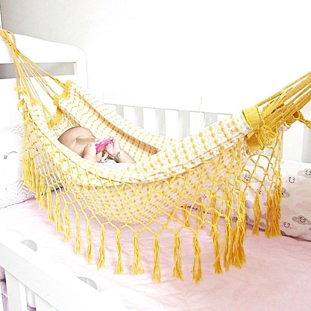 alternativa, uma bela redinha que pode ser facilmente instalada no berço! Assim, em um simples
