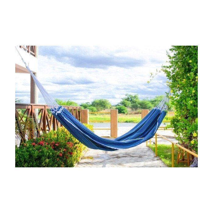 Rede de Dormir Xadrez Azul Descanso Algodão Azul