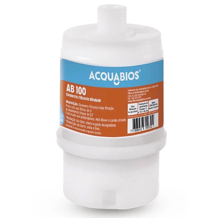 Refil AB 100 BR/TR Acqua 5' Reposição Filtros POU Blindado Tripla Filtração Acquabios
