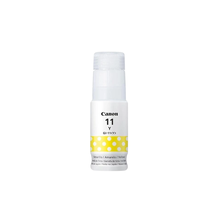 O refil de tinta Canon GI-11 Amarelo oferece alto rendimento impressão com alta qualidade e cores mais nítidas através de sua formulação especial de tinta corante. Utilizando o modo econômico é possível imprimir até 7600 páginas com o cartucho preto, 7700 páginas com os cartuchos coloridos ou até 2200 fotos coloridas.
