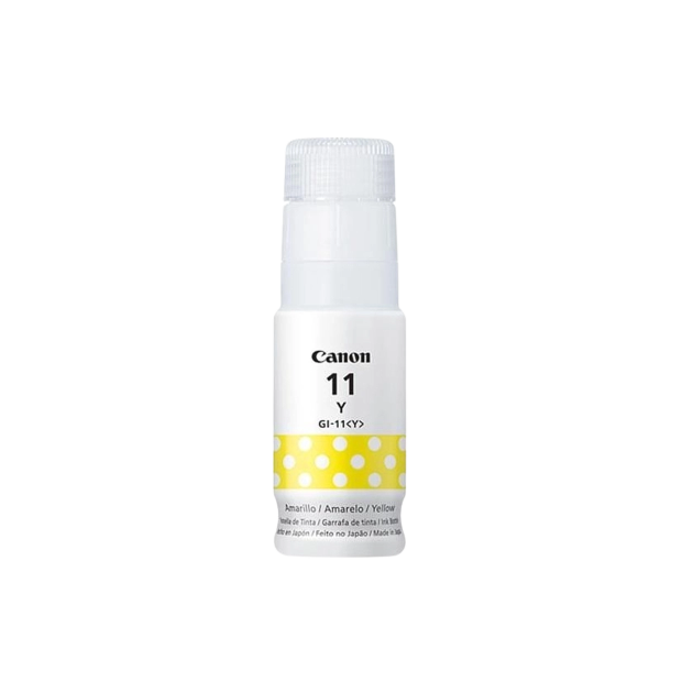 O refil de tinta Canon GI-11 Amarelo oferece alto rendimento impressão com alta qualidade e cores mais nítidas através de sua formulação especial de tinta corante. Utilizando o modo econômico é possível imprimir até 7600 páginas com o cartucho preto, 7700 páginas com os cartuchos coloridos ou até 2200 fotos coloridas.