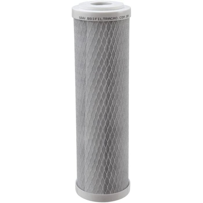 Elemento de Carbon Block, para retenção de partículas e adsorção de cloro.