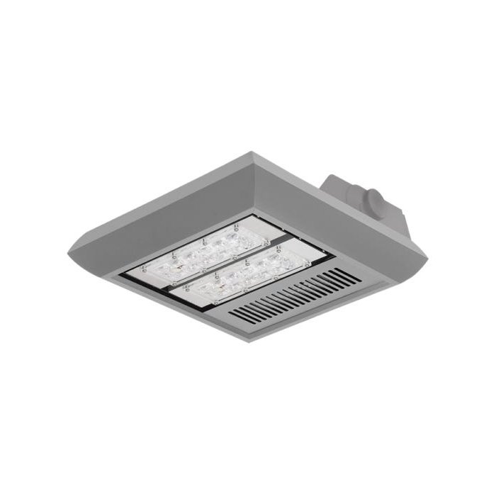 Luminária LED com índice de proteção IP67 indicada para iluminação de ruas de condomínios, estacionamentos, praças e áreas externas expostas ao tempo.