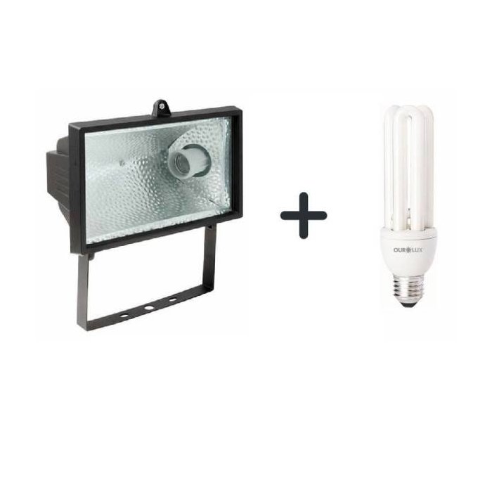 Refletor com Bocal E27 Preto + Lâmpada Eletrônica 30W