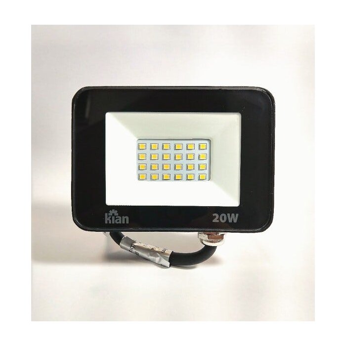 Projetor de led Kian com altíssima qualidade e durabilidade. Indicado para áreas externas. Potência 20w - Bivolt 110-240V - Fluxo luminoso 1600lm - Grau de proteção IP65 - Angulo de abertura 120°.