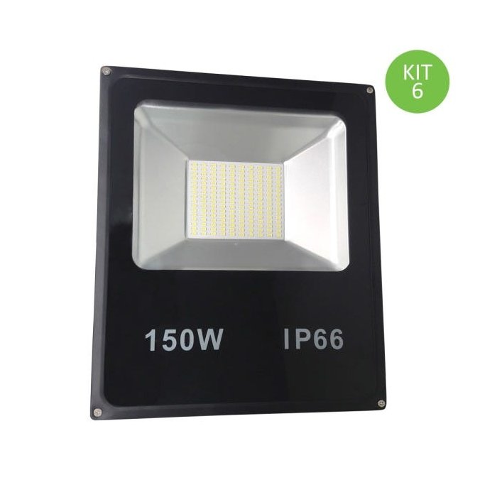 Refletor Led 150w Smd Holofote Bivolt Prova D'água Branco Frio Kit 6