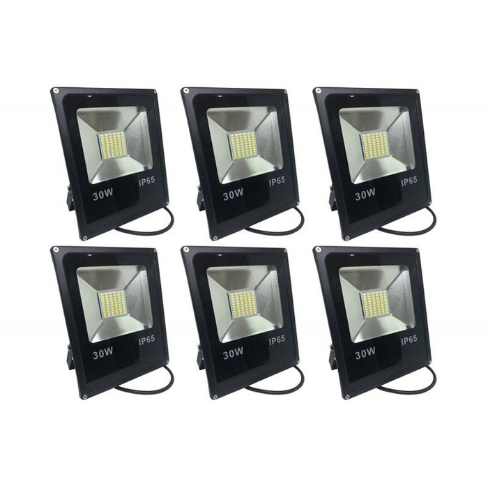 Refletor Led Branco Quente Smd 30w Prova D'água Bivolt Kit 6