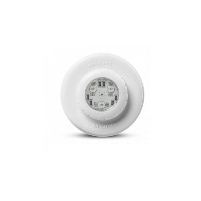 O Refletor LED RGB ABS Vinil é produzido em plástico com engenharia ABS, para instalação em piscinas de vinil. O refletor de LED Nautilus é compacto, conta com potência de 9 W, considerando todas as cores acesas e o seu ângulo de abertura do refletor é de 120°. O dimensionamento indicado é de 1 refletor para cada 15 m² de área da piscina, podendo ser alterado conforme as características da piscina, local de sua instalação e o efeito de iluminação desejado. O Refletor tem opções de cores via sistema RGB, um processo eletrônico que combina as luzes e assim reproduz diversas cores. Esse processo permite tanto a transição constante nas cores do arco íris, quanto à iluminação com cores fixas nas opções em branco, vermelho, azul ou verde.