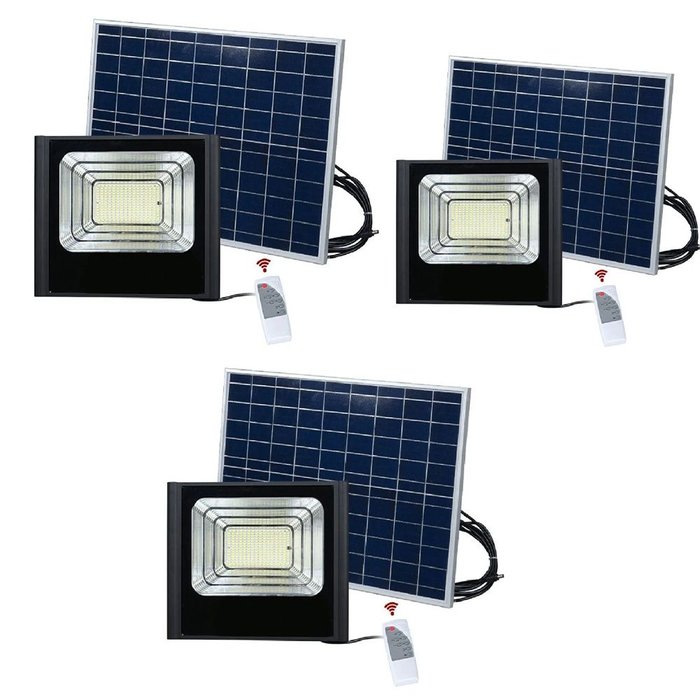 Refletor Solar 40w Kit 3 Uni Holofote Luminaria Sensor Placa Energia Luz Controle Leva pra Casa Rs40
