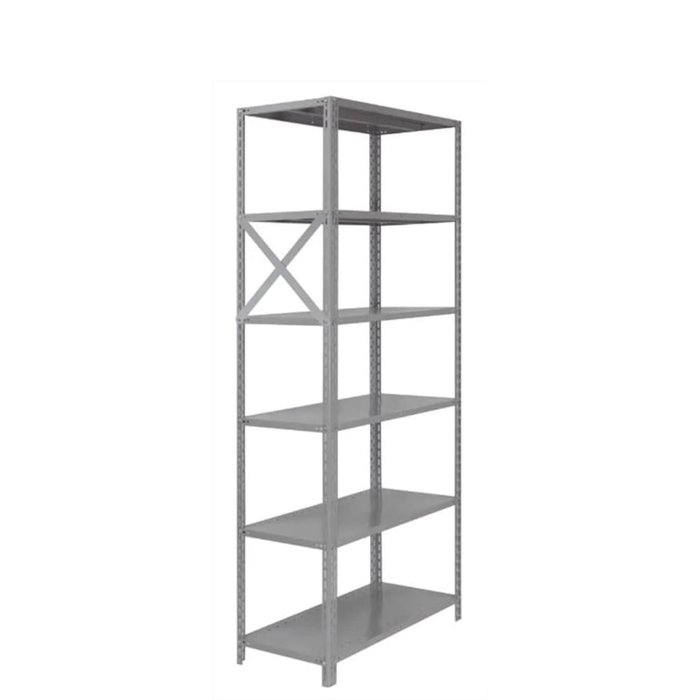 Reforço lateral em X para estantes de aço amapá com prateleiras de 58cm, ideal para aumentar a capacidade de peso nas prateleiras.