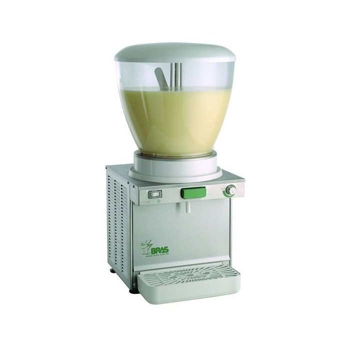 DESCRIÇÃO 1 Cuba de policarbonato com capacidade 19 litros Válvula Servidora com alta vazão do produto Voltagem: 110 V ou 220 V / 60 Hz Peso: 22 kg Dimensões: 31 (L) x 34 (P) x 71 (H) cm Painéis em aço inoxidável. Compressor hermético com alta capacidade frigorífica, operando com gás ecológico R 134 A. Tem como característica a agitação lenta do produto. Dotada de pás giratórias com velocidade constante para circulação da bebida com movimento muito suave, homogêneo. Adequado a produtos naturais como sucos de frutas naturais densos, suco de milho, iogurte líquido e outras bebidas. O modelo A 19 foi projetado para refrigerar e homogeneizar produtos com alta densidade, já que possui uma cuba circular, exclusividade da Bras (o que facilita a circulação interna) e um potente motor agitador. As pás giram no fundo da cuba, o que evita a decantação de produtos densos.