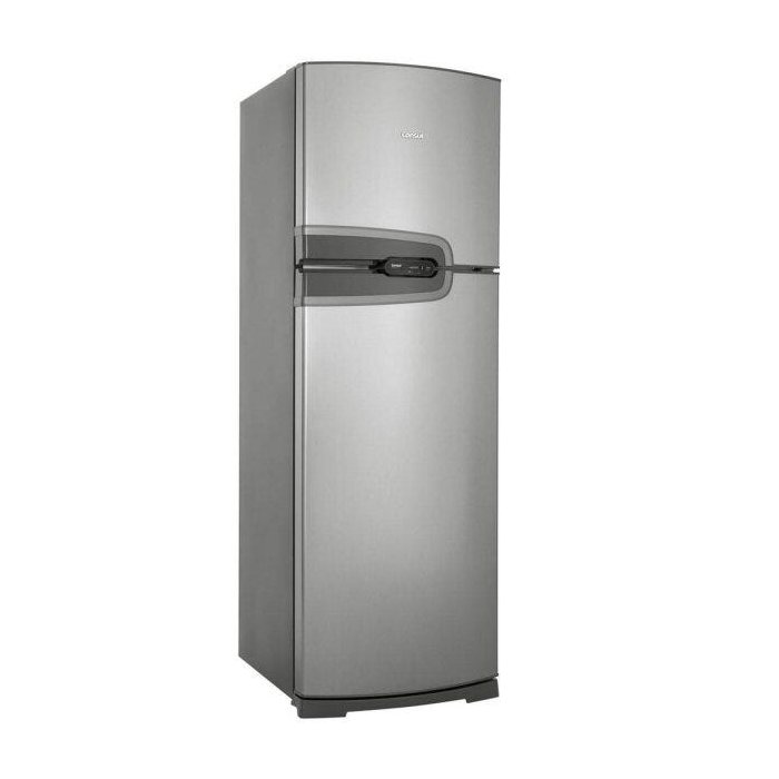 Esta é a geladeira de duas portas, uma porta para o freezer e outra para o refrigerador. O fato de ter duas portas traz praticidade: se quiser um item que está no congelador, não há a necessidade de abrir a porta do refrigerador, e vice e versa.