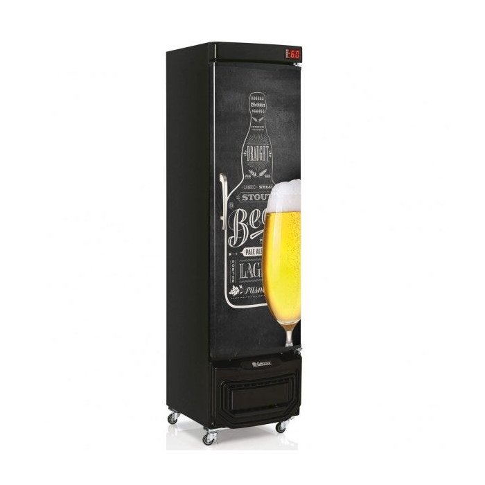 A cervejeira Gelopar foi desenvolvida especialmente para você que aprecia uma cerveja bem gelada, é ideal para refrigeração de cervejas e bebidas (água, sucos e refrigerantes), possui prateleiras reguláveis para comportar vários tipos de embalagens, é Frost Free não precisa descongelar, possui 4 regulagens de temperatura -6º, -4º, 1ºc ou 3ºc (modo economia), reguladas através de controlador eletrônico digital com indicador digital, suas medidas são altura 1844 x largura 480 x profundidade 591mm, possui porta cega adesivo quadro e copo cerveja, laterais pretas, possui gás refrigerante R290.