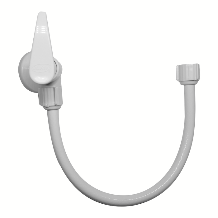 Material: Mangueira em PVC Flexível e Registro fabricado em ABS (Plástico de Engenharia).