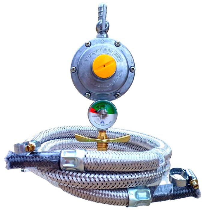 Regulador ideal para quem quer ter segurança durabilidade e eficiência dentro da cozinha + mangueira malha de aço inox 1METRO