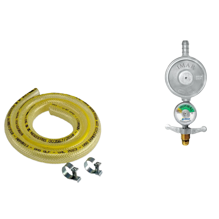 KIT REGISTRO REGULADOR DE GÁS COZINHA 1KG C/ MANOMETRO + MANGUEIRA 1,20cm + ABRAÇADEIRA