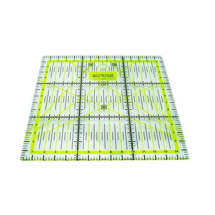 Régua de acrílico cristal medida de 15x15cm, espessura 3mm, com marcações de centimetros e ângulos, ideais para Patchwork.