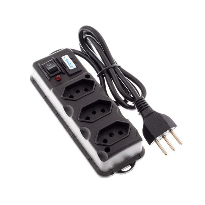 Régua de Energia 3 Tomadas com fusível e botão de ligar