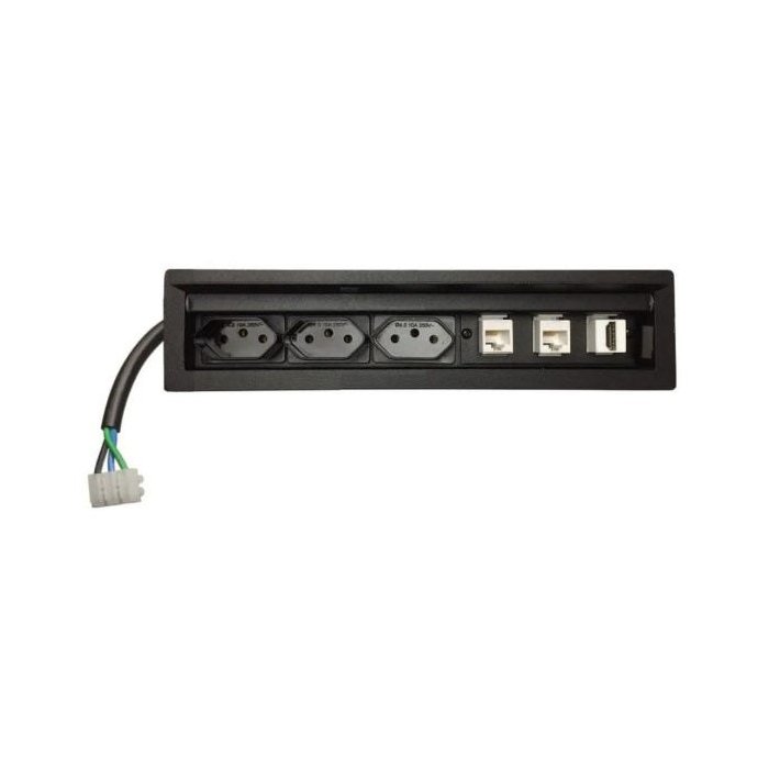 Régua De Tomada SLIM-303A Para Embutir, Tomada, Hdmi, Rede - Preto