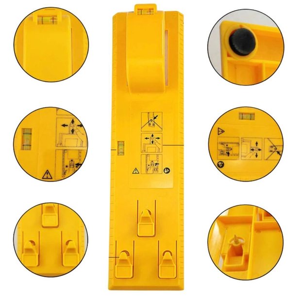 Régua Nível e Marcador Vertical e Horizontal para Alinhar e Fixar Quadros e Fotos na Parede amarela